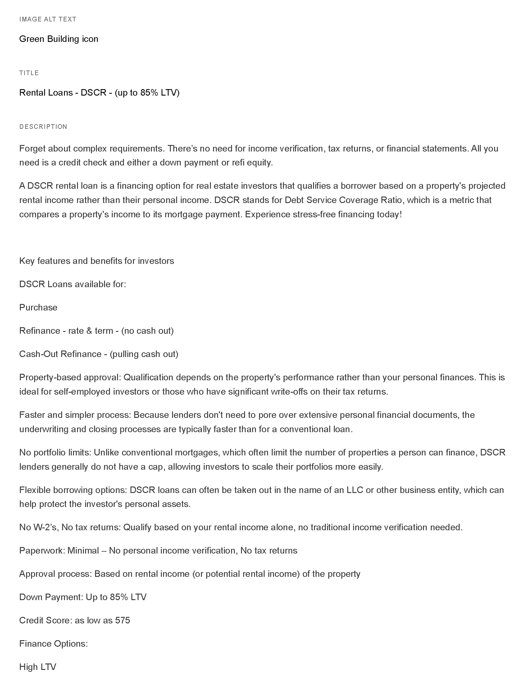 At Alpha Investment Solutions, we specialize in a variety of mortgage options tailored for property investors. This includes DSCR loans, Fix and Flip financing, Ground-up construction loans, Bridge loans, and commercial property mortgages.